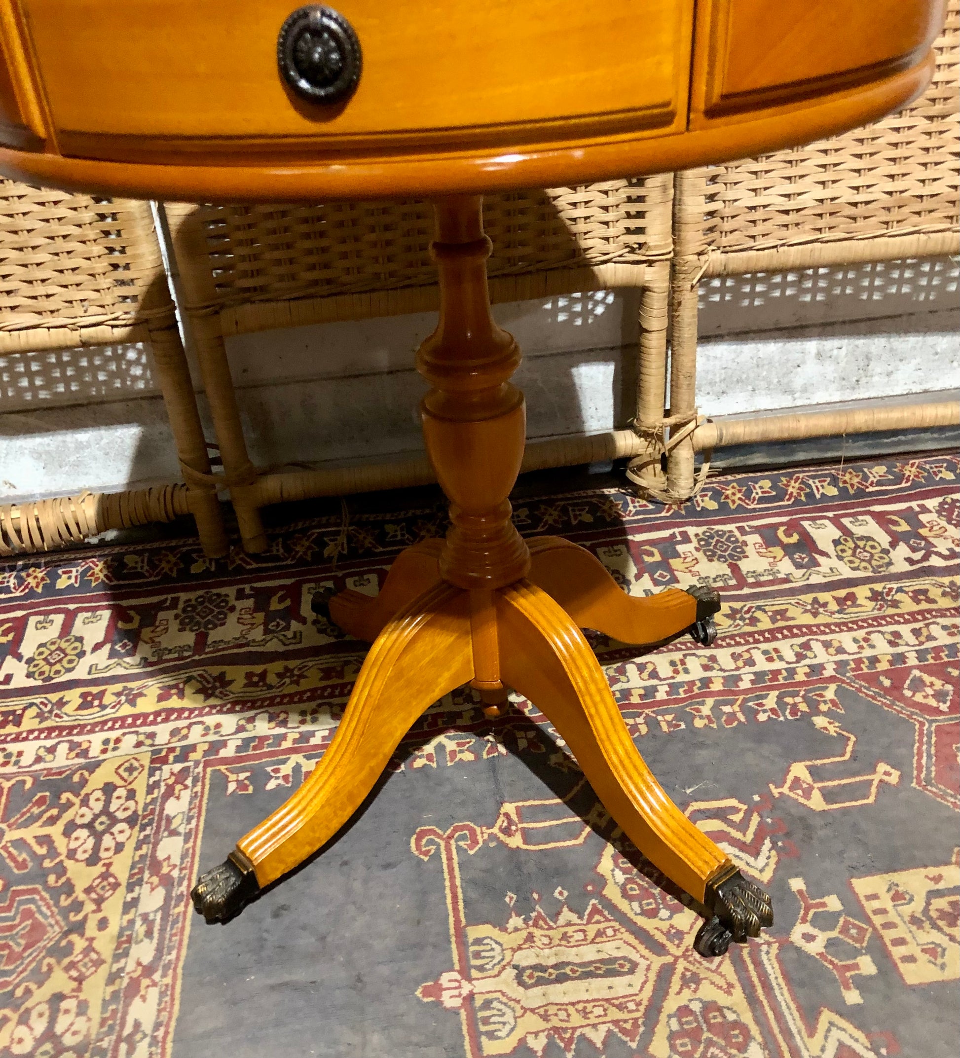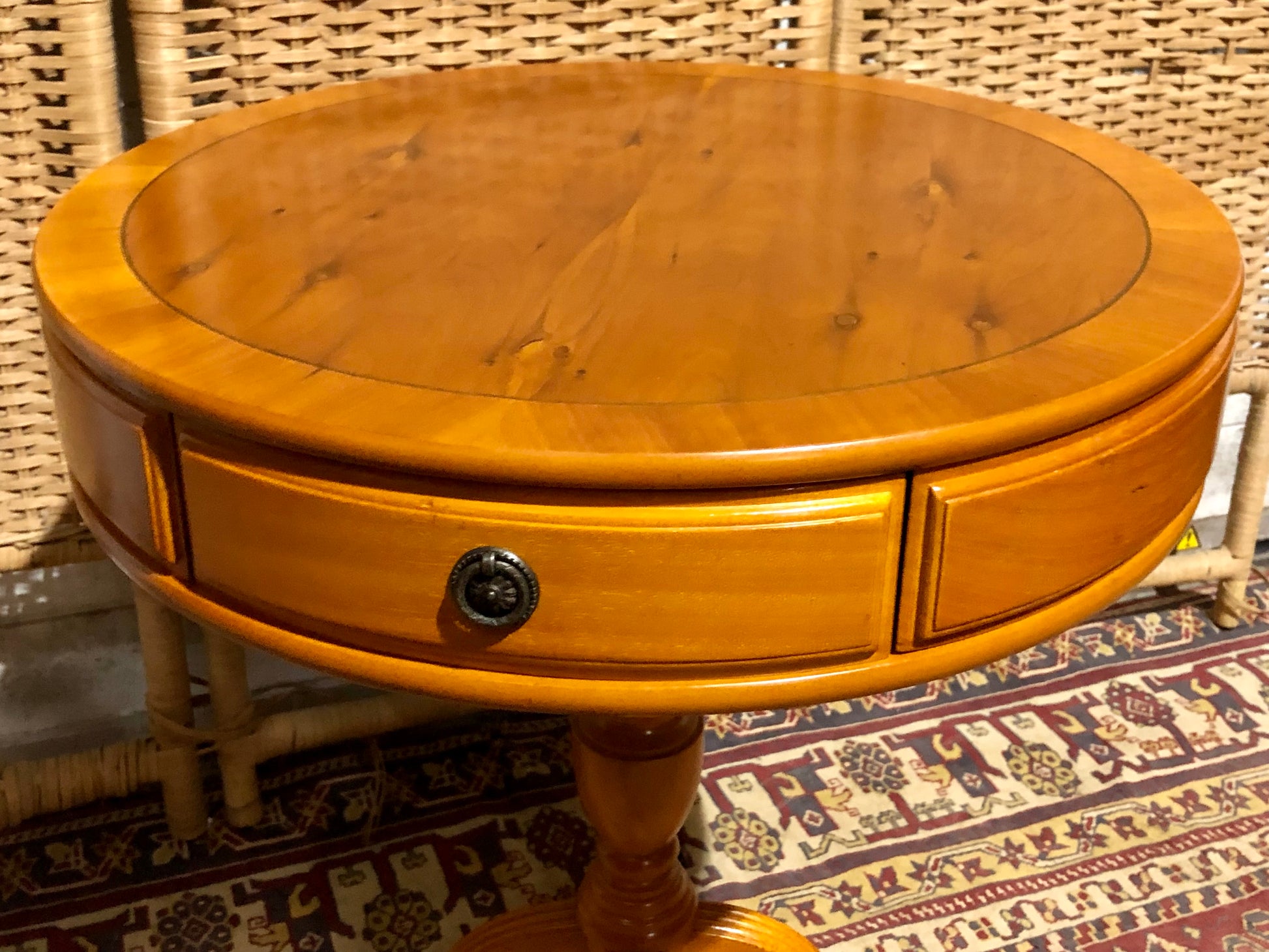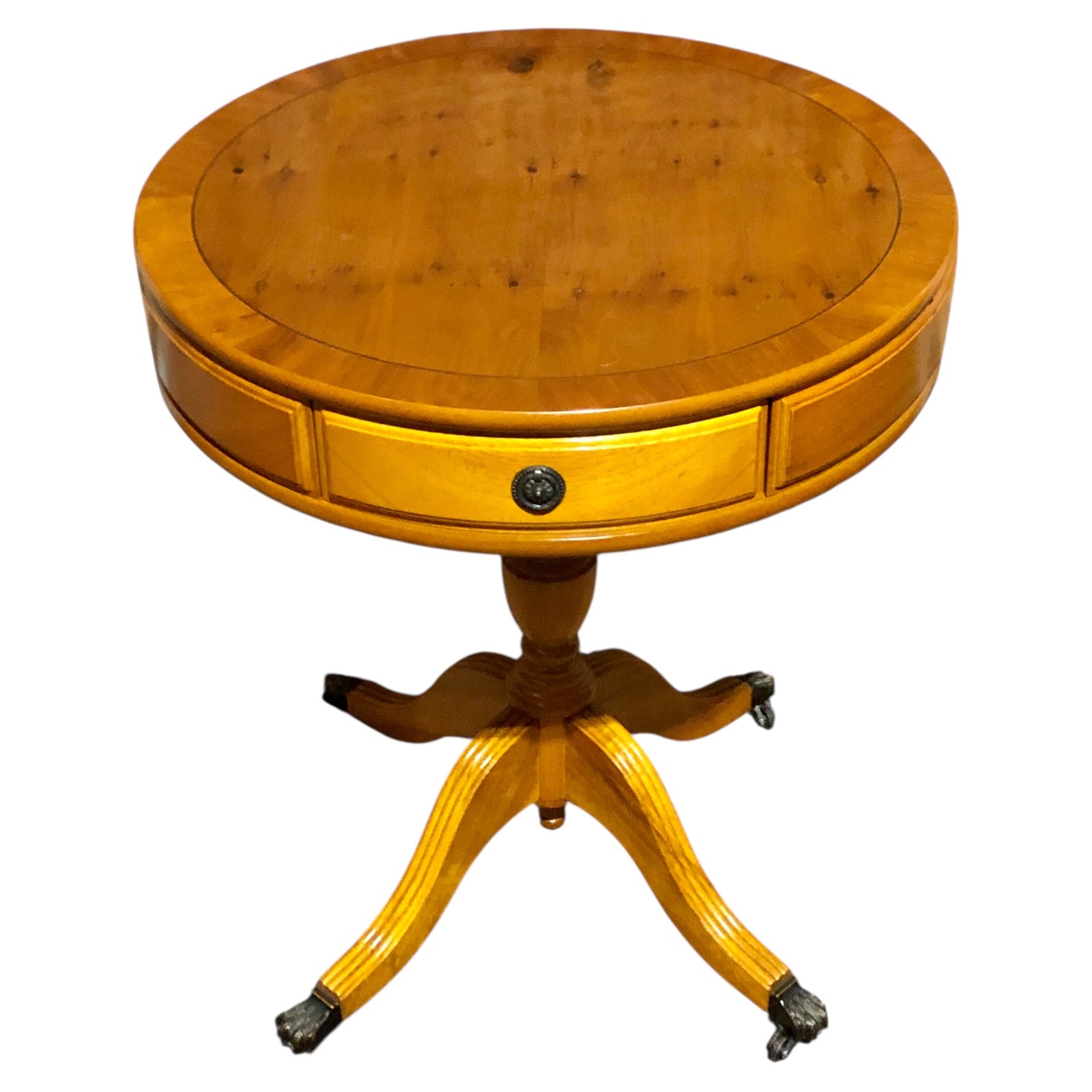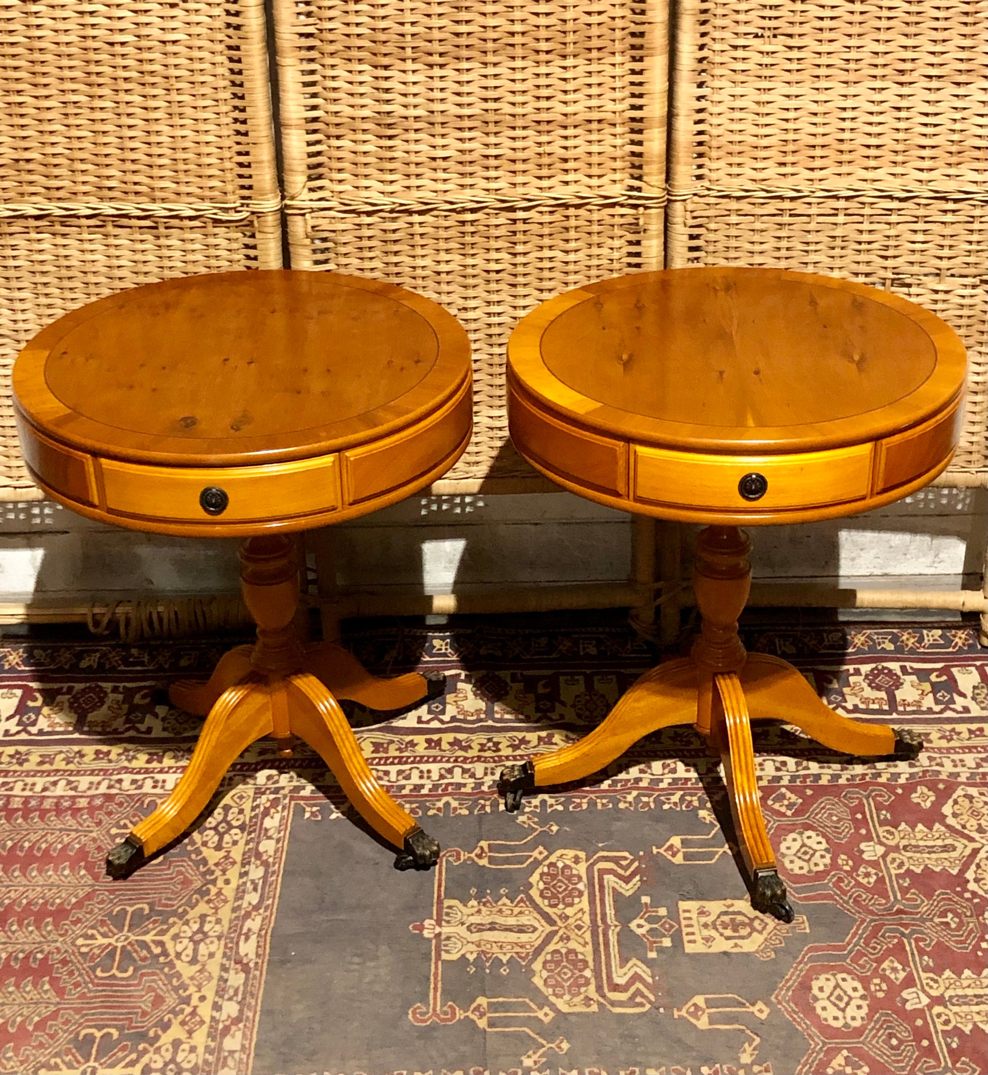 Pair of Vintage Yew Drum Tables – Elegant Utility on Castors !
