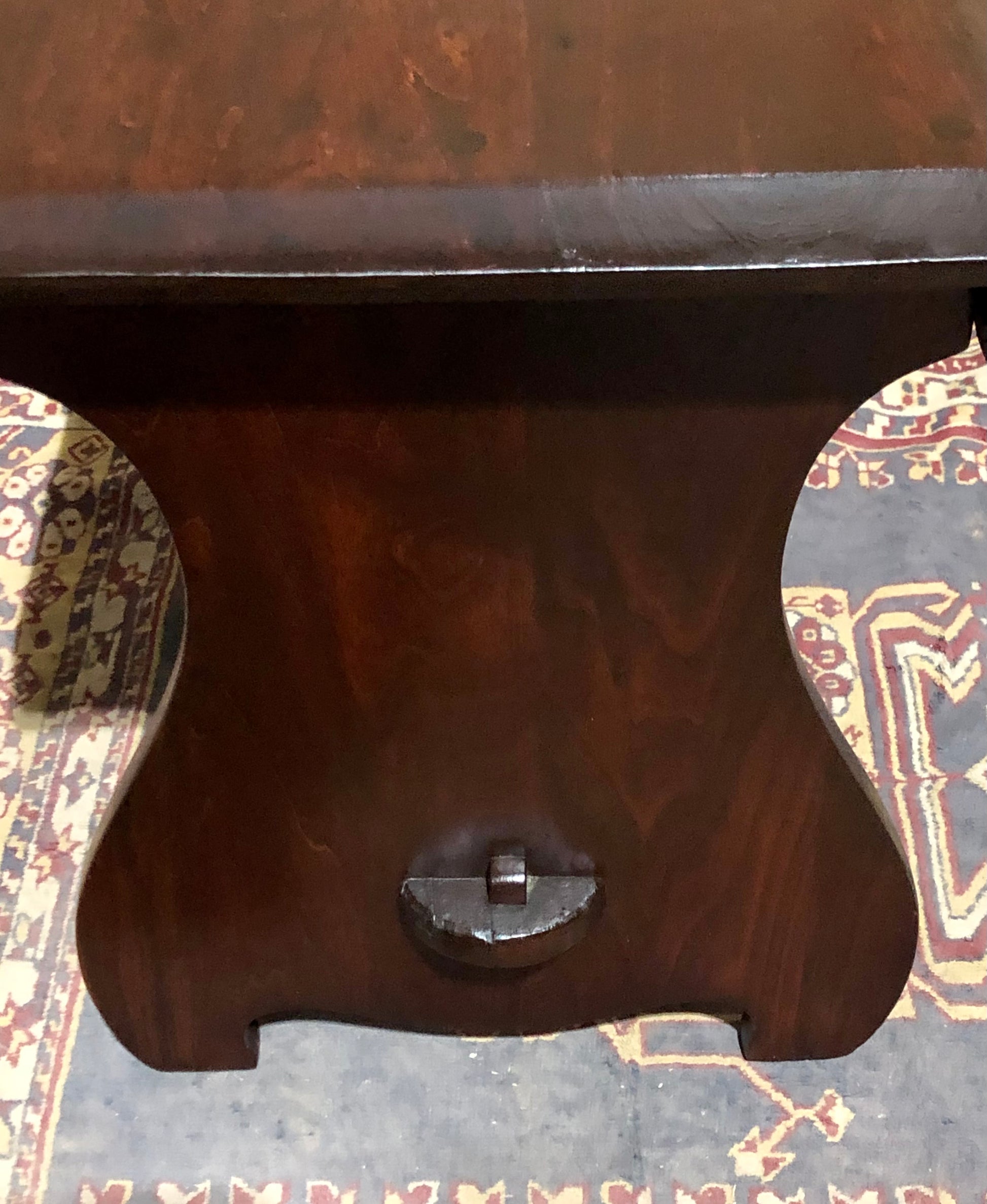 Celebrate craftsmanship with this beautifully hewn Arts and Crafts stool, a compact marvel in warm fruitwood, rich with character and quiet strength.