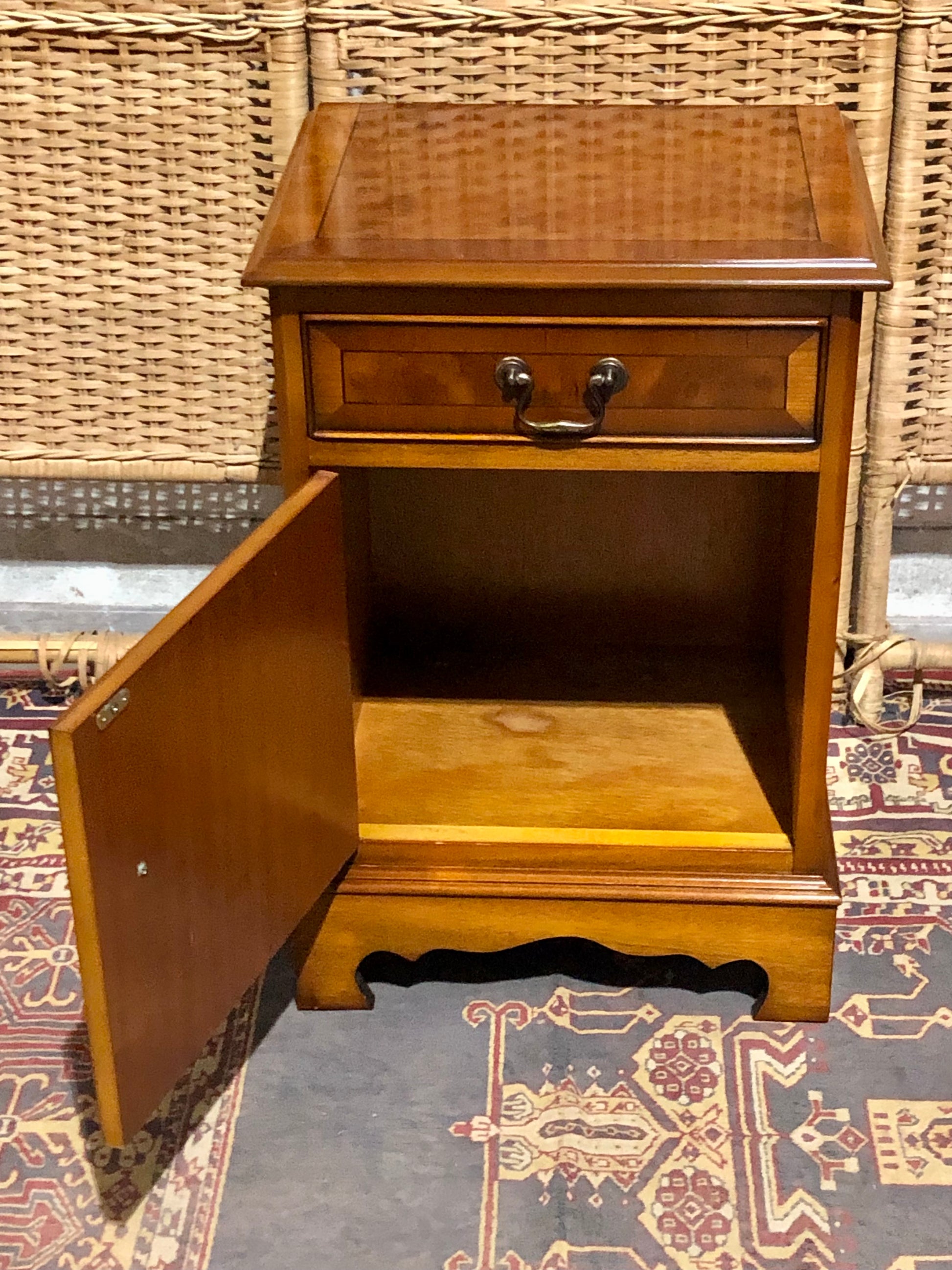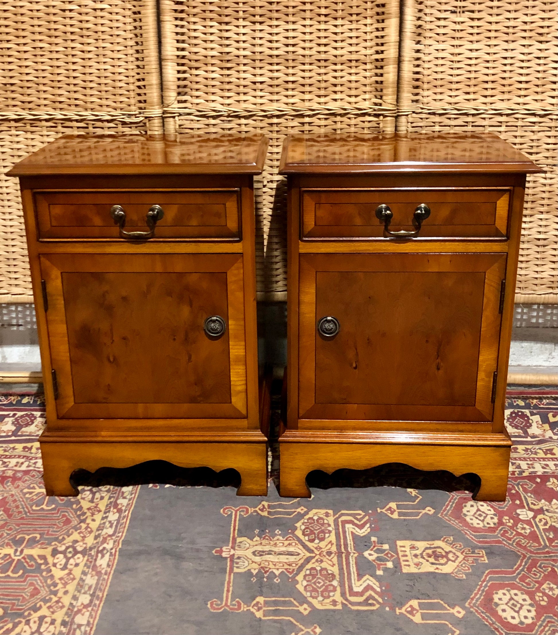 Timeless Pair of Vintage Yew Bedside Tables – Elegance at Your Elbow !
