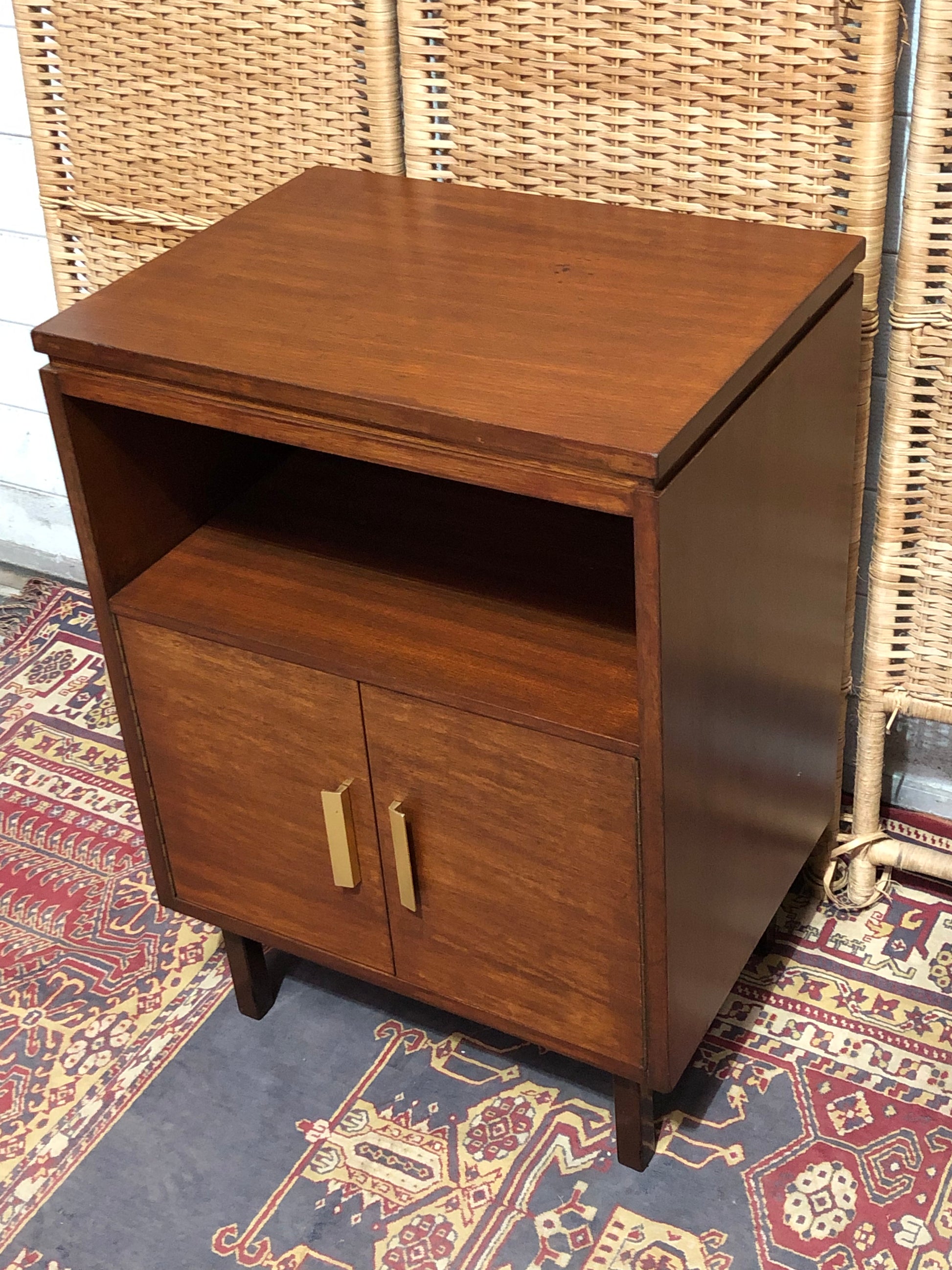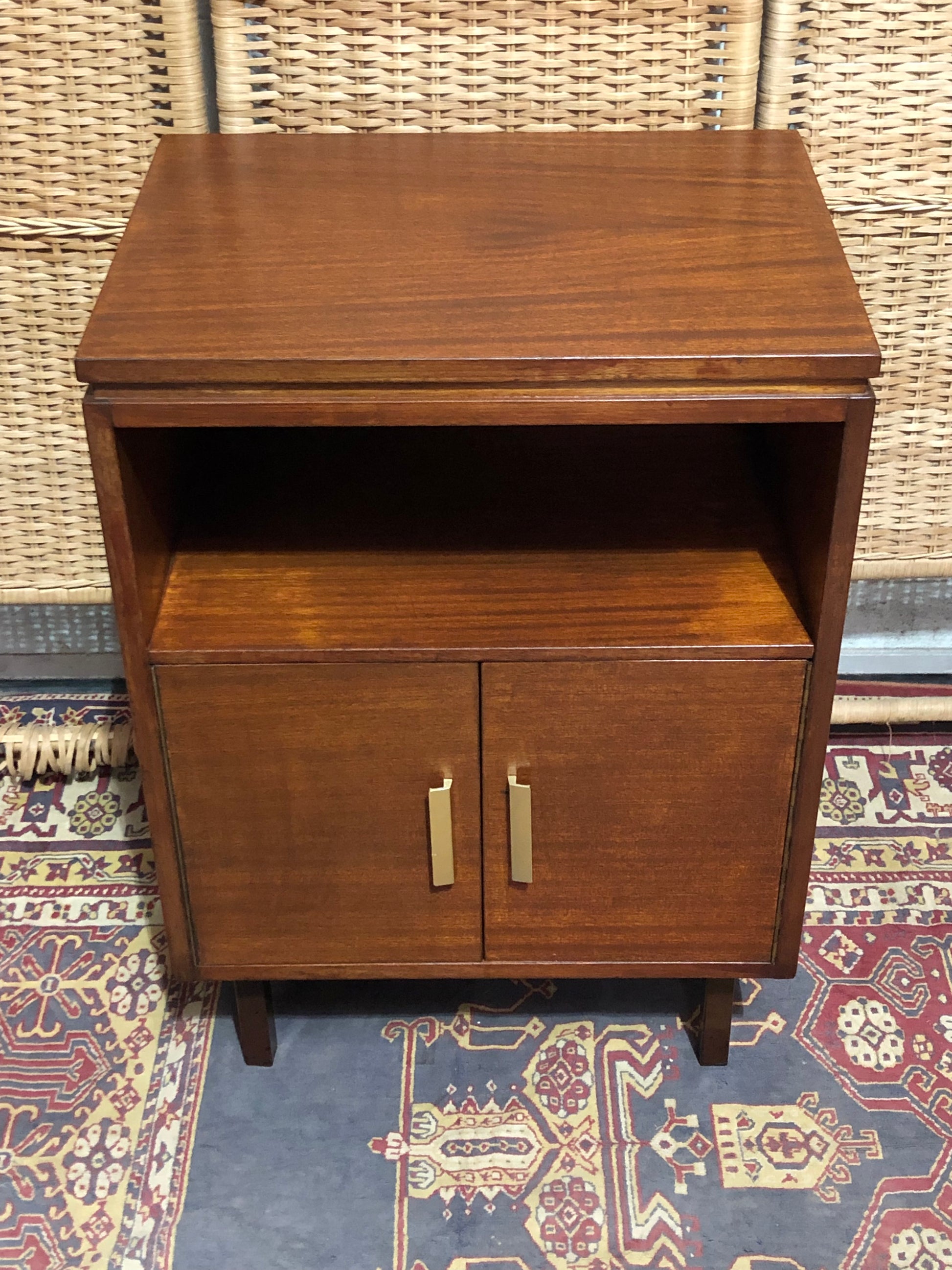 With this pair of retro mahogany bedside tables that blend vintage elegance with modern functionality.
