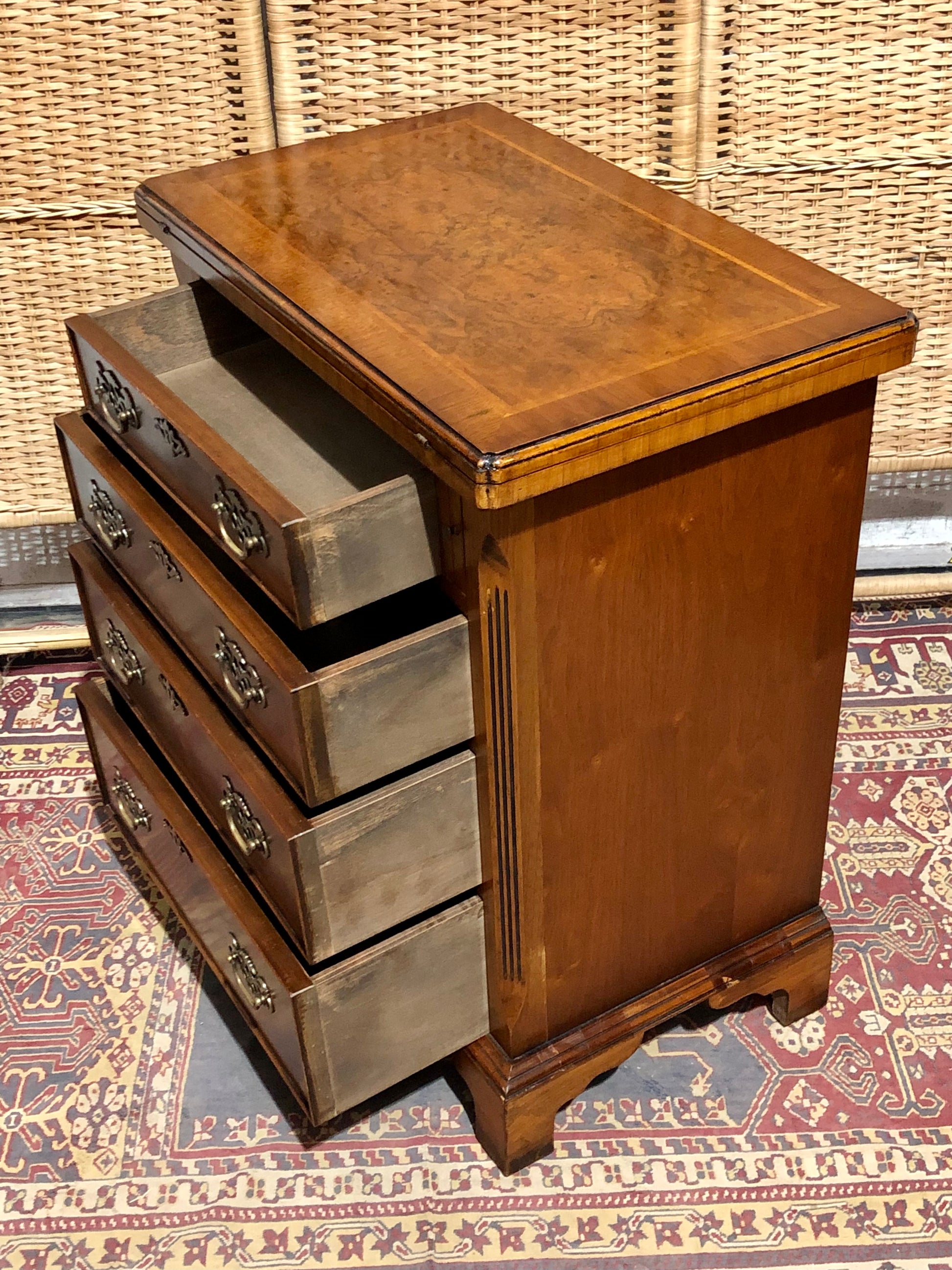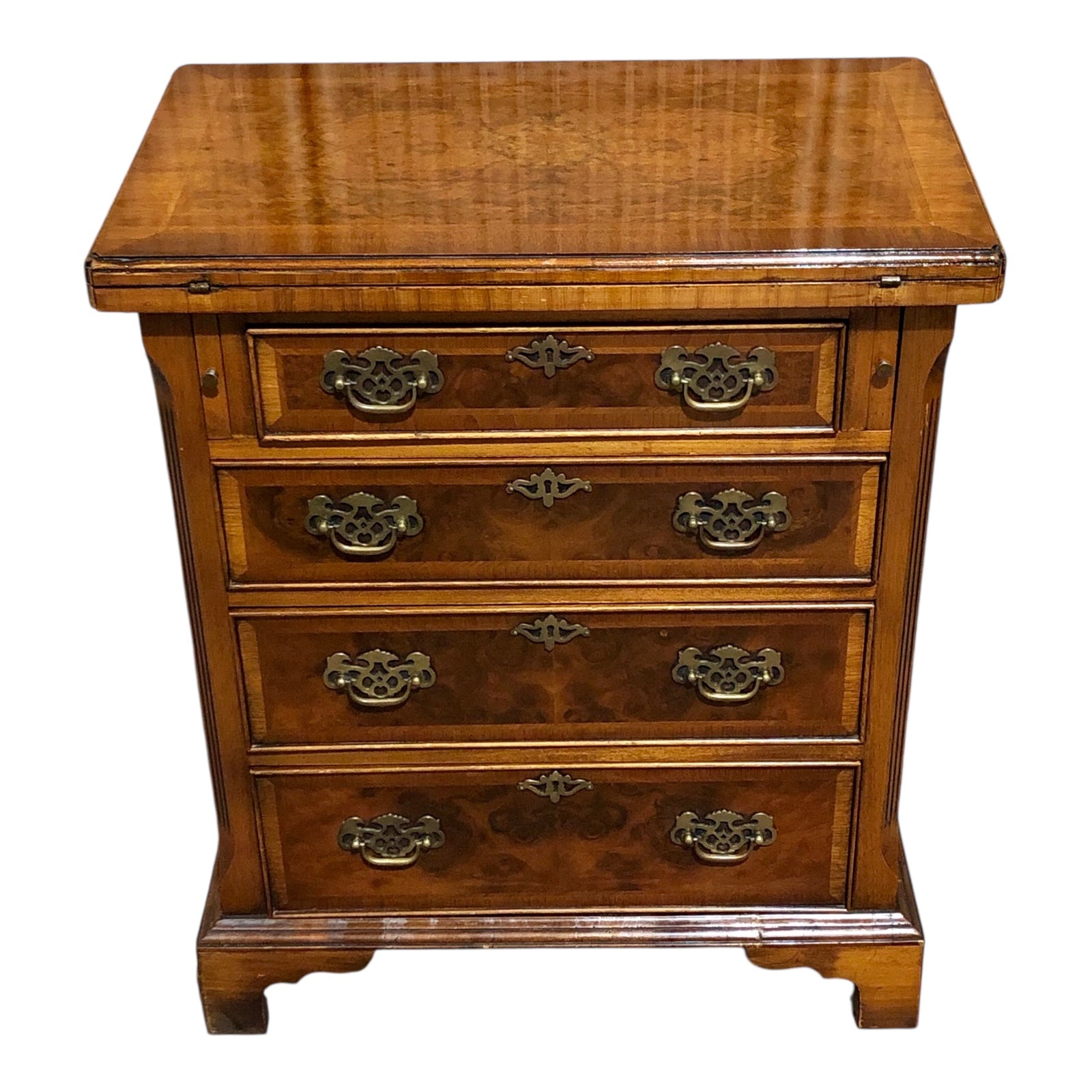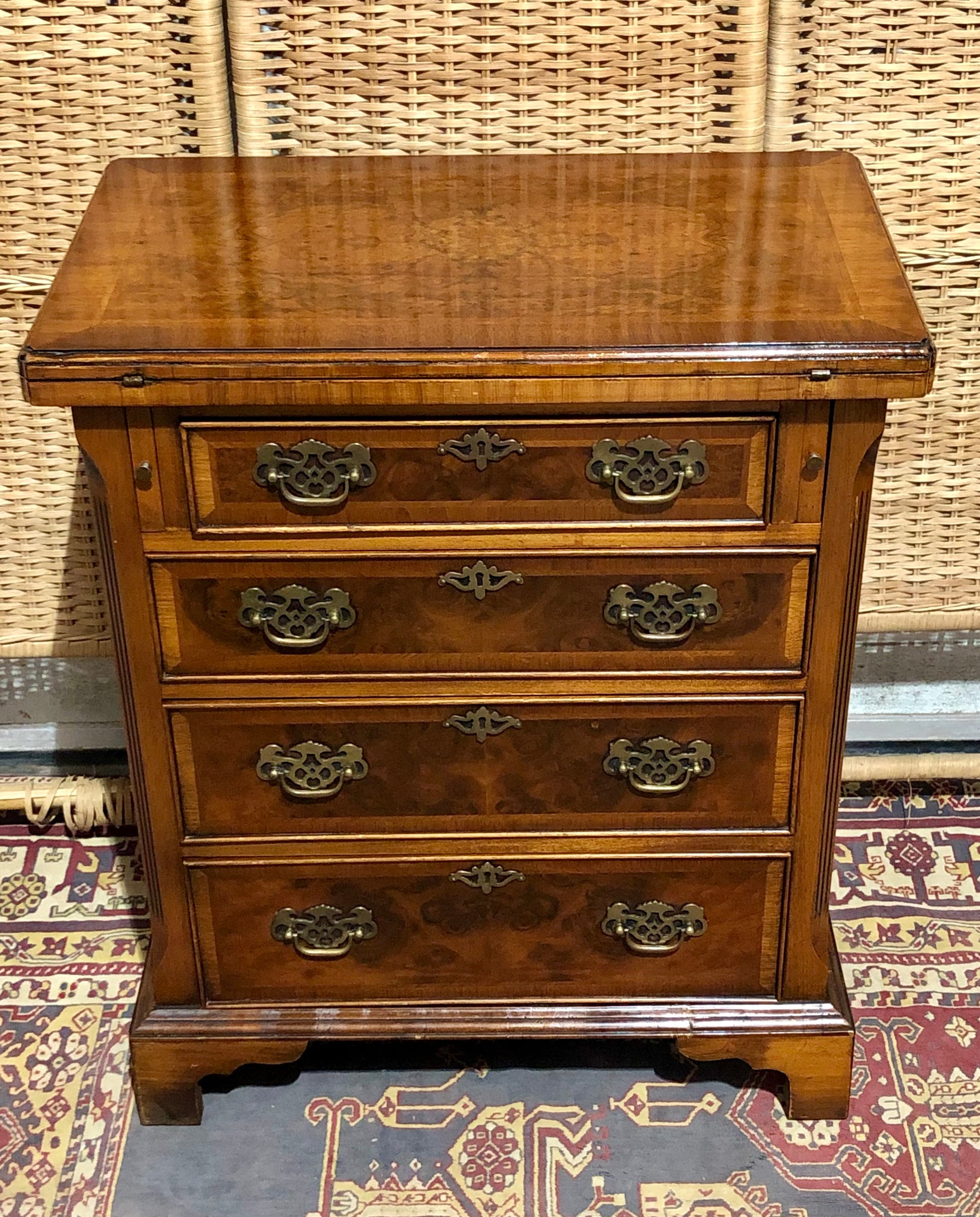 Vintage Figured Walnut Bachelor’s Chest - Four Drawers of Timeless Elegance