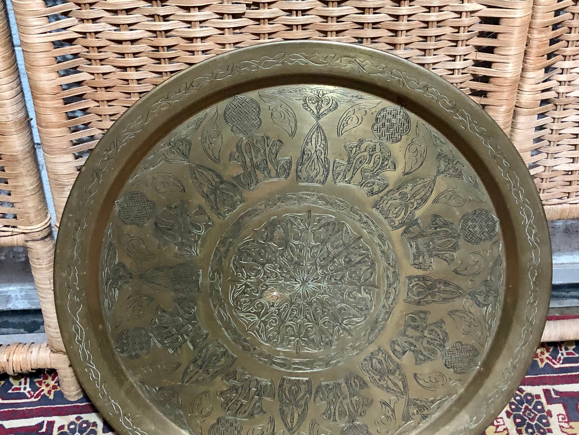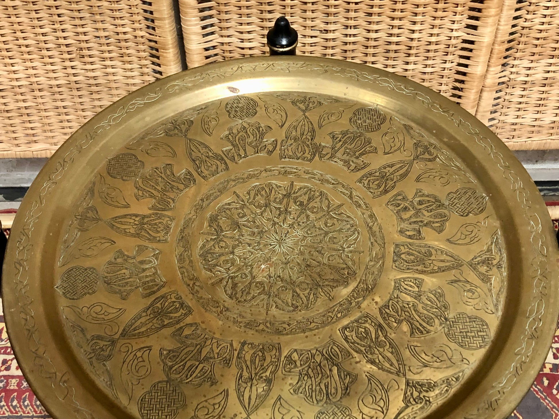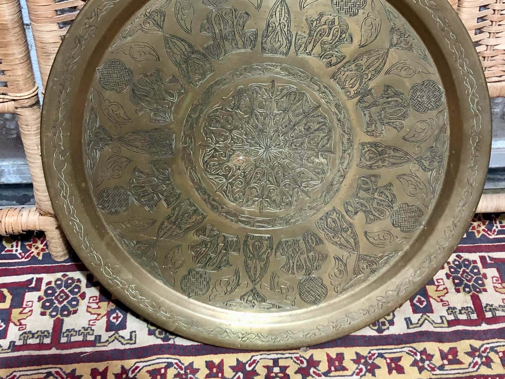 A gleaming brass tray top — rich in patina and character, perfect for serving drinks, displaying décor, or adding a touch of glamour to any room.