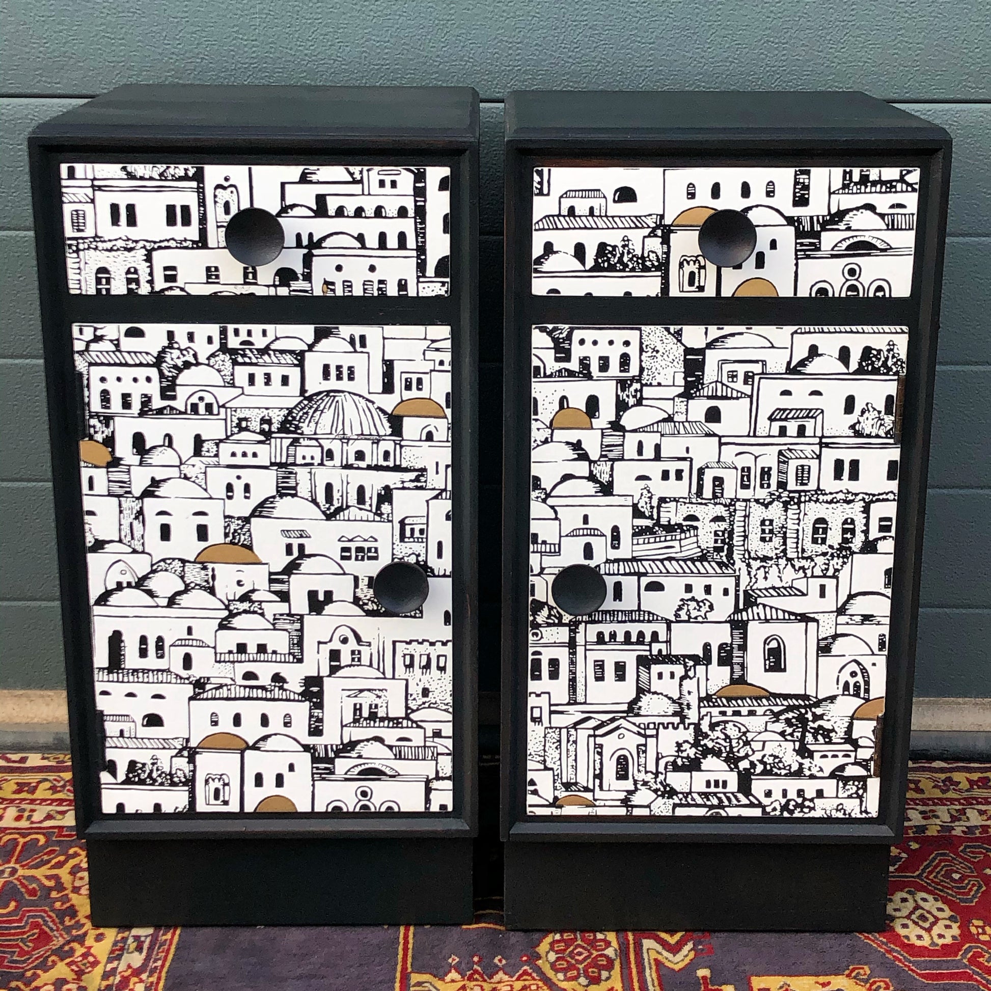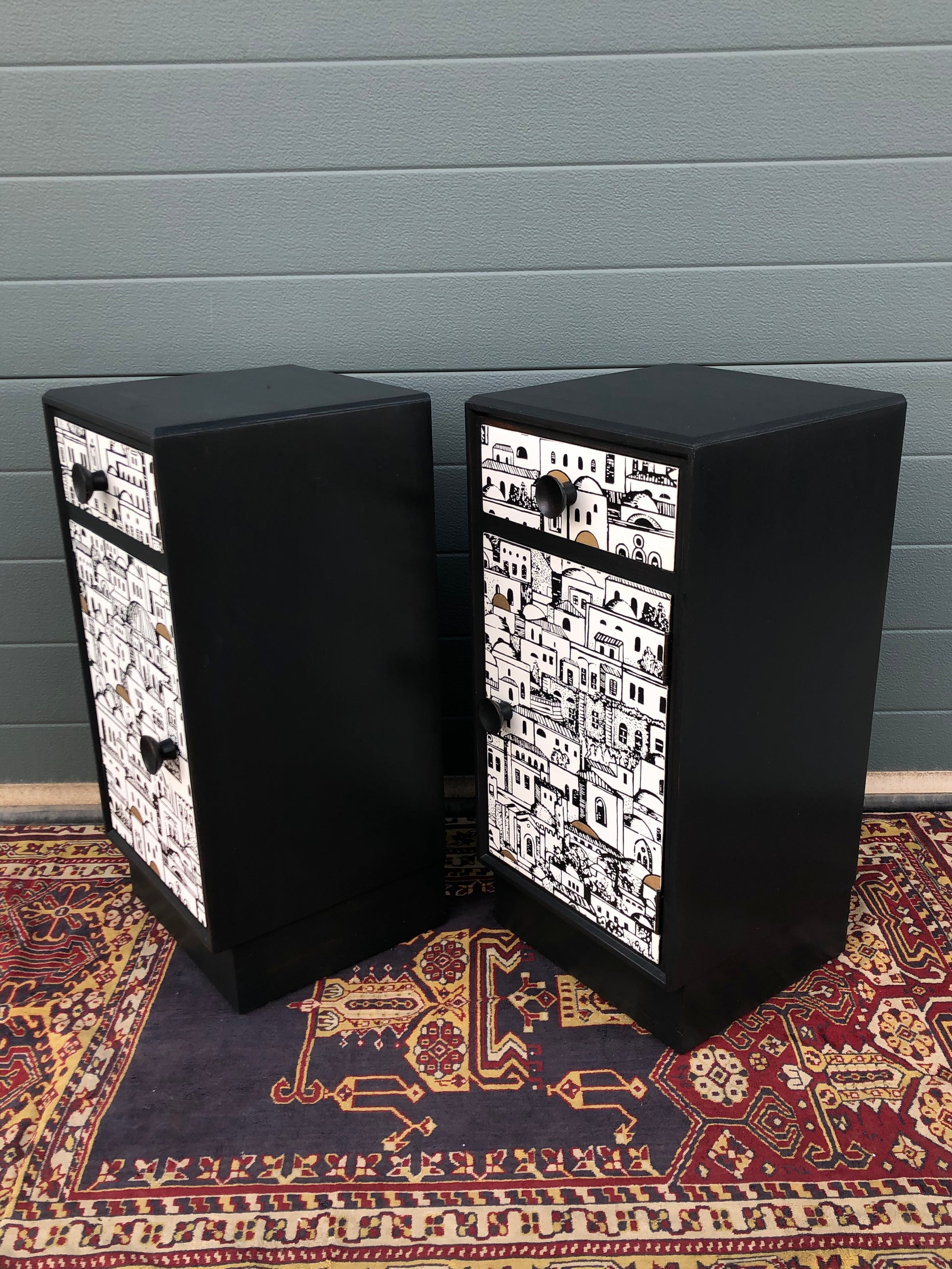 Pair Of Refinished Art Deco Style Bedside Cabinets / Bedside Tables ( SOLD )