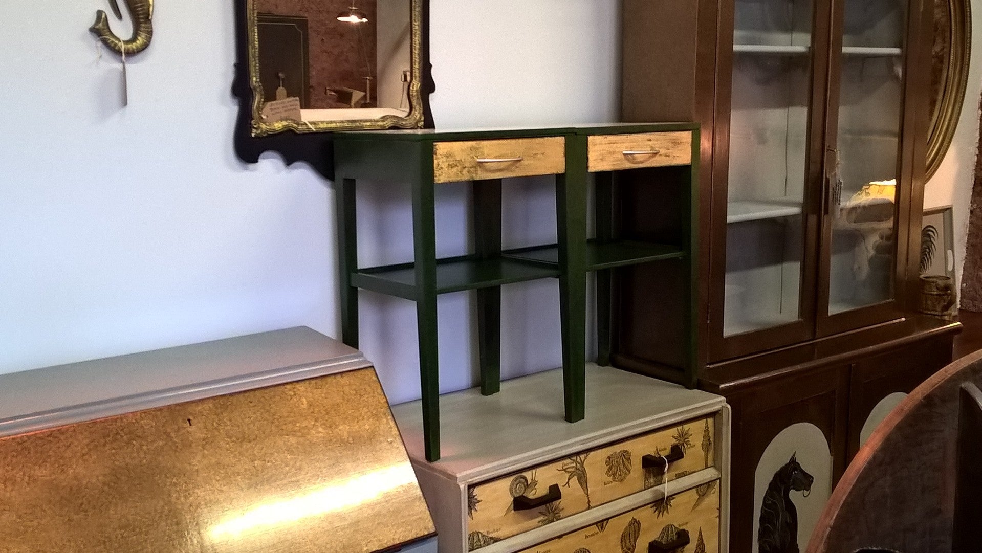 They have been refinished a specialised green paint effect, which has a varnished finish.