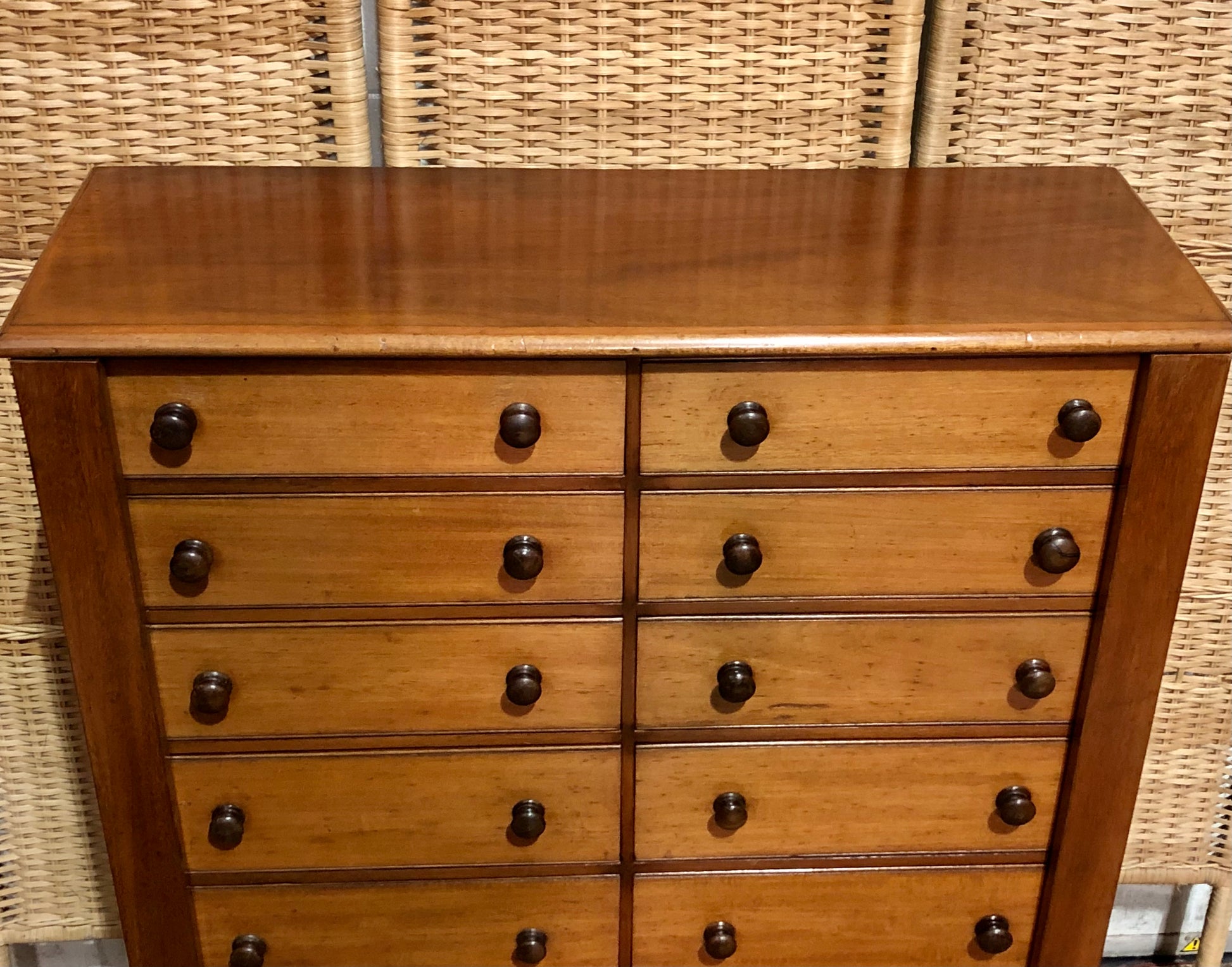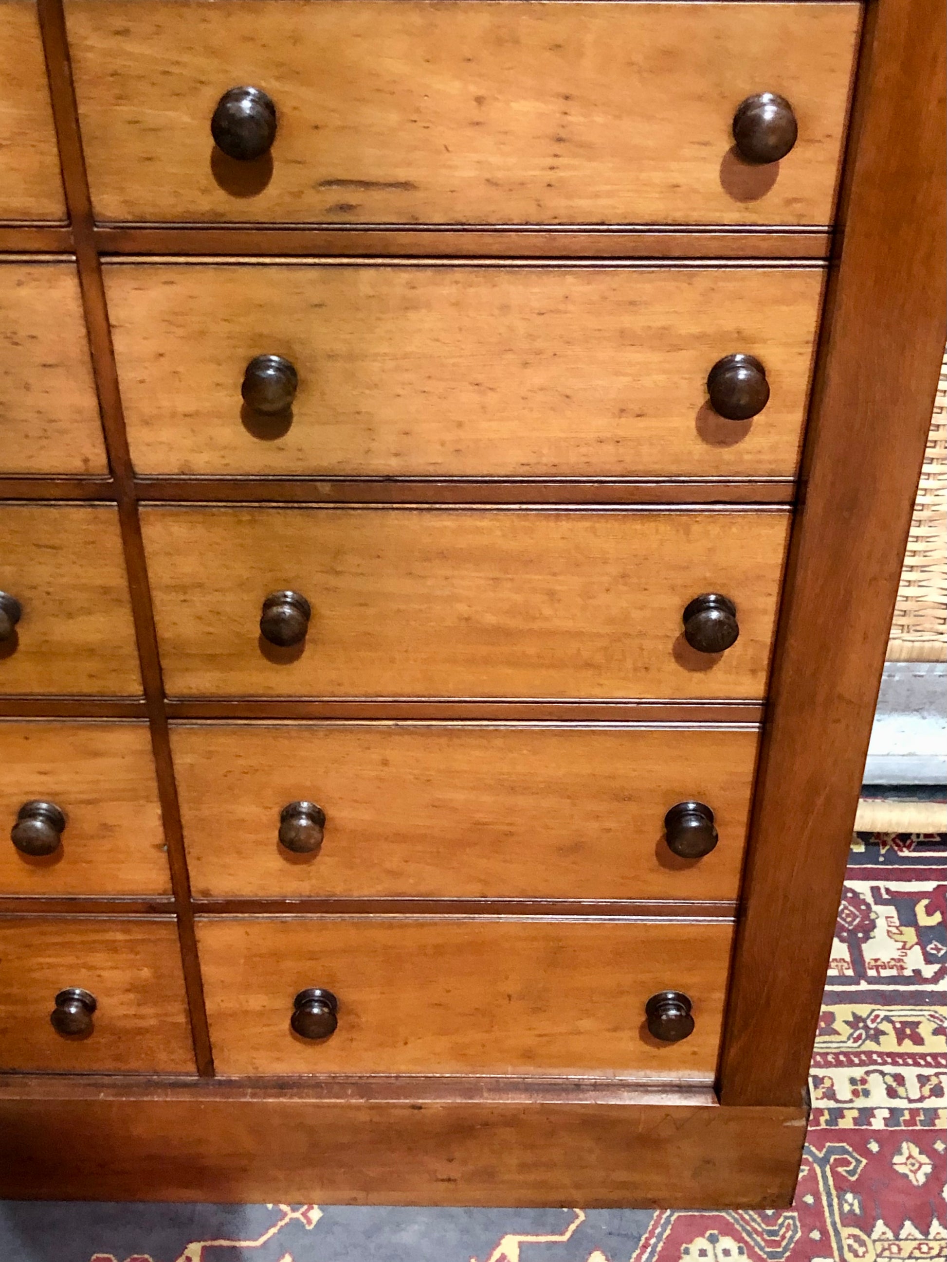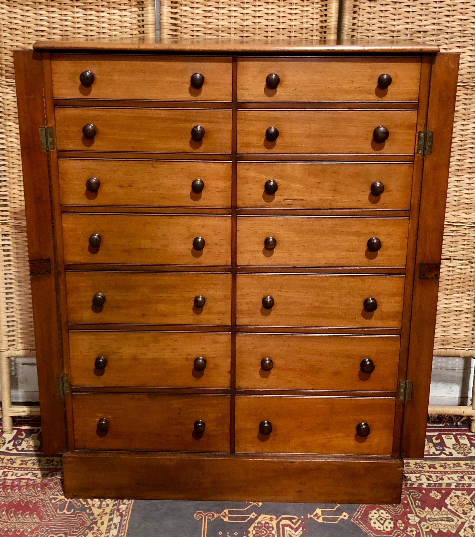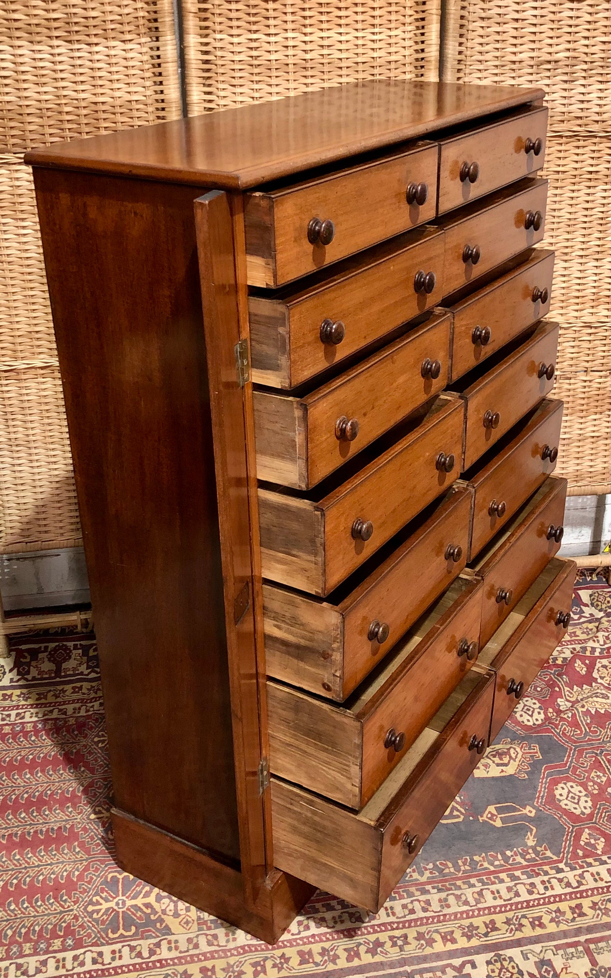 000625....Handsome Antique Double Fronted Wellington/Collectors Chest Of Fourteen Drawers