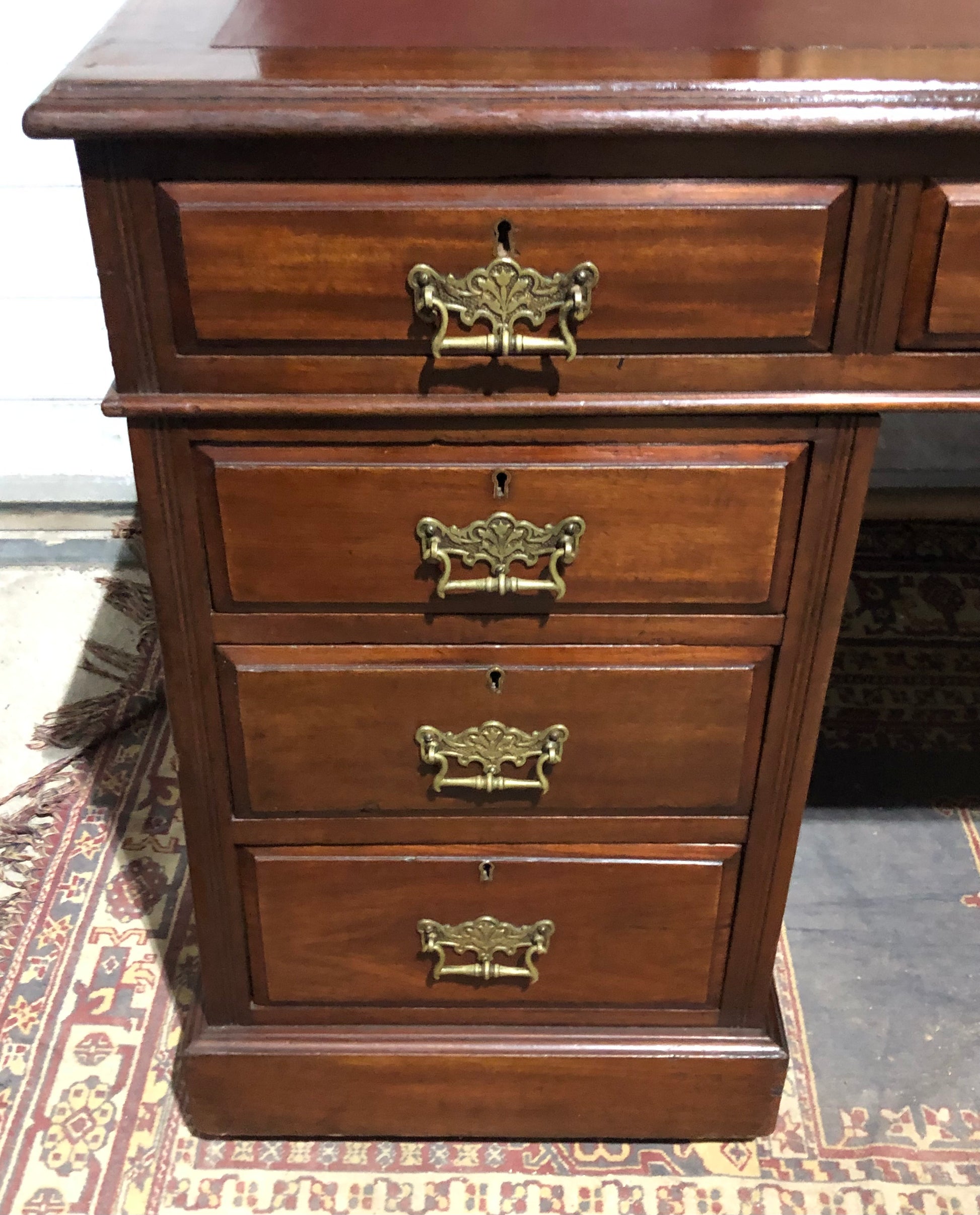 000568....Handsome Large Edwardian Walnut Pedestal Desk