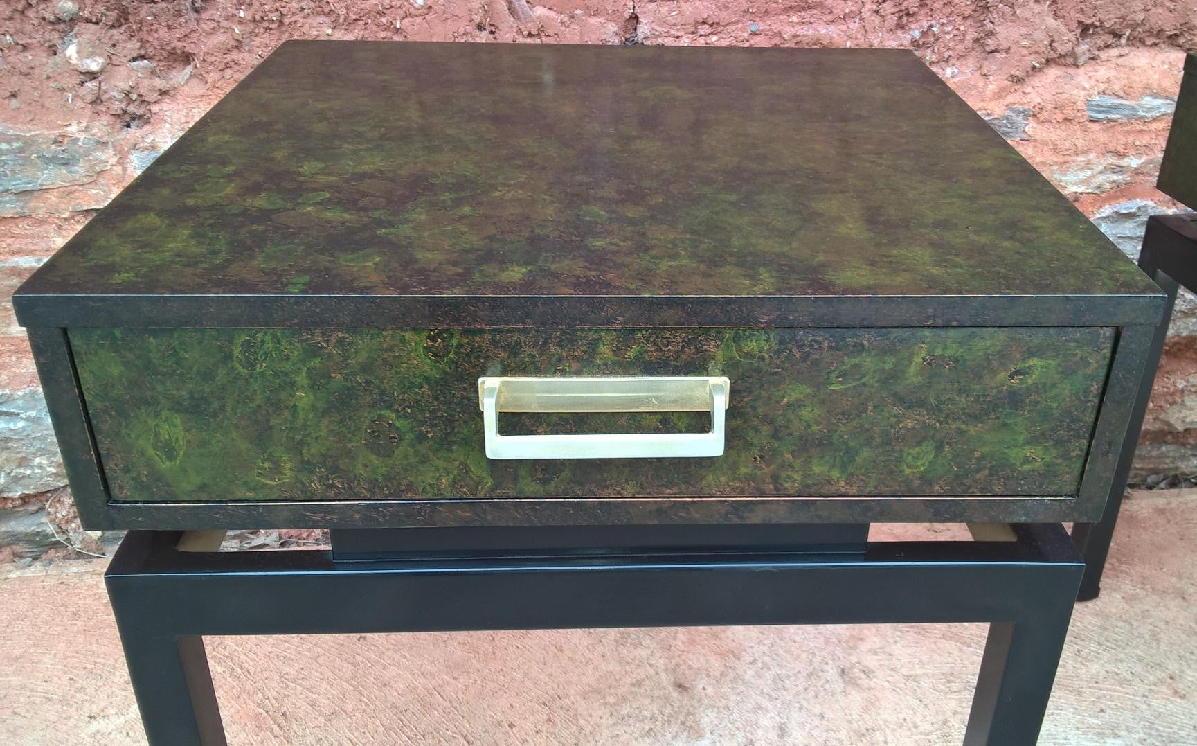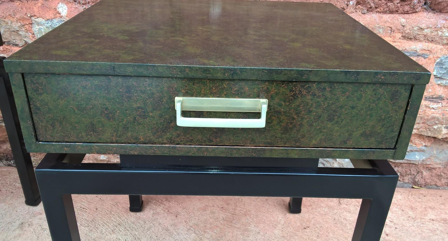 They have been refinished in our unique "Green Walnut" hand painted finish , which has been sealed with traditional french polish for protection.